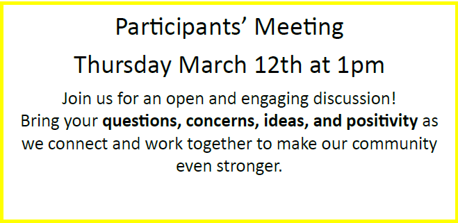 1:00pm Participants’ Meeting + Add to Google Calendar + iCal / Outlook export Date Thu, Mar 12, 2026 Time 1:00 pm - 2:00 pm Category Information & Education Special Event Share this event Support Our Programs and Activities Donate Now Sign up for our mailing list to get all of the latest PASC updates. Subscribe Here! Today's Events 06 Mar 8:00am Continental Breakfast. Friday EVENT DETAIL 06 Mar 8:45am Line Dancing Exercise. Friday EVENT DETAIL 06 Mar 9:30am Coffee Hour. Friday EVENT DETAIL 06 Mar 9:45am Classic Exercise. Friday EVENT DETAIL 06 Mar 12:00pm Lunch. Friday EVENT DETAIL 06 Mar 1:00pm Pickleball @ Rec Center. Friday, Rec Center EVENT DETAIL 06 Mar 1:00pm Mahjong @ Rec Center. Friday, Rec Center EVENT DETAIL No event found!