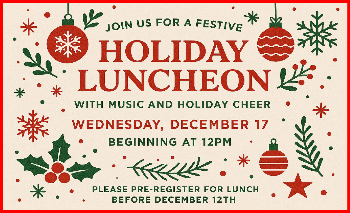 12:00pm Holiday Luncheon + Add to Google Calendar + iCal / Outlook export Date Wed, Dec 17, 2025 Time 12:00 pm - 2:00 pm Category Entertainment & Celebration Meals Share this event Support Our Programs and Activities Donate Now Sign up for our mailing list to get all of the latest PASC updates. Subscribe Here! Today's Events 16 Dec 8:00am Breakfast. Tuesday EVENT DETAIL 16 Dec 8:00am Hanukkah Breakfast Tuesday EVENT DETAIL 16 Dec 9:00am Walking Group. Tuesday, Black Rock Sanctuary EVENT DETAIL 16 Dec 9:30am Coffee Hour. Tuesday EVENT DETAIL 16 Dec 10:00am Mahjong. Tuesday EVENT DETAIL 16 Dec 11:00am 8 Week Challenge to Healthy Eating. Tuesday EVENT DETAIL 16 Dec 12:00pm State Sen. Muth’s Mobile Office. Tuesday EVENT DETAIL 16 Dec 12:00pm Lunch. Tuesday EVENT DETAIL 16 Dec 12:45pm Pinochle. Tuesday EVENT DETAIL 16 Dec 12:45pm Train Dominos. Tuesday EVENT DETAIL 16 Dec 1:00pm Pickleball @ Rec Center. Tuesday, Rec Center EVENT DETAIL 16 Dec 1:15pm Yoga. Tuesday EVENT DETAIL No event found!