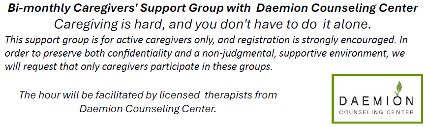 9:30am Caregiver Support Group. + Add to Google Calendar + iCal / Outlook export Date Tue, Jan 6, 2026 Expired! Time 9:30 am - 10:30 am Category Information & Education Social & Discussion Wellness Share this event Support Our Programs and Activities Donate Now Sign up for our mailing list to get all of the latest PASC updates. Subscribe Here! Today's Events 03 Mar 8:00am Breakfast. Tuesday EVENT DETAIL 03 Mar 9:00am Walking Group. Tuesday, Black Rock Sanctuary EVENT DETAIL 03 Mar 9:30am Coffee Hour. Tuesday EVENT DETAIL 03 Mar 9:30am Caregiver Support Group. Tuesday EVENT DETAIL 03 Mar 10:00am Mahjong. Tuesday EVENT DETAIL 03 Mar 10:30am MCCC Dental Presentation Tuesday EVENT DETAIL 03 Mar 12:00pm Lunch. Tuesday EVENT DETAIL 03 Mar 12:45pm Pinochle @ Rec Center. Tuesday, Rec Center EVENT DETAIL 03 Mar 12:45pm Train Dominos. Tuesday EVENT DETAIL 03 Mar 1:00pm Pickleball @ Rec Center. Tuesday, Rec Center EVENT DETAIL 03 Mar 1:00pm Mahjong Lessons. Tuesday EVENT DETAIL 03 Mar 1:15pm Yoga. Tuesday EVENT DETAIL No event found!