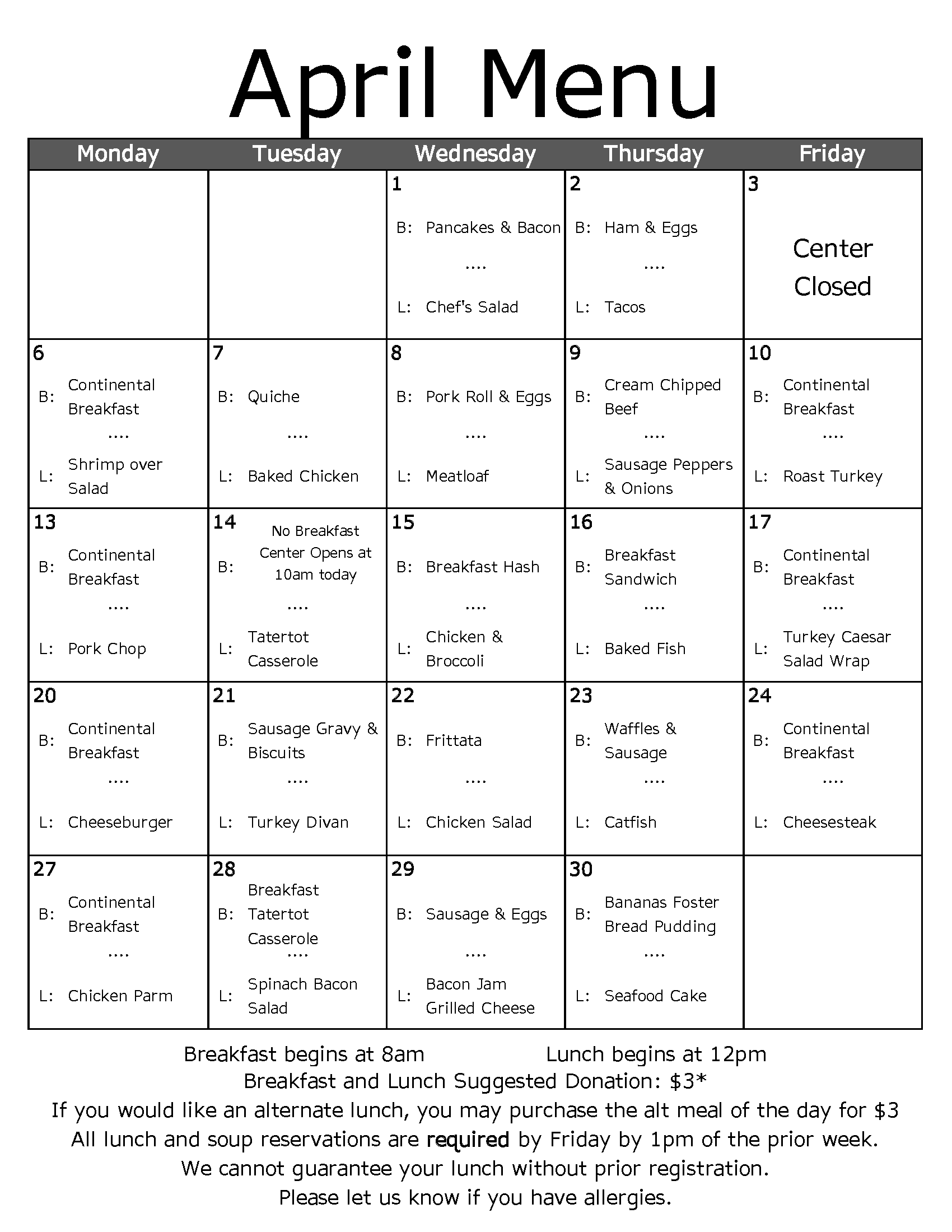 8:00am Breakfast.